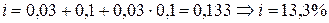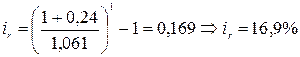 (1+ i)3 =1,6289; (1+ i) = 1,1768; i = 0,1768 ≈ 17,7%