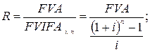 По формуле обыкновенного общего аннуитета: