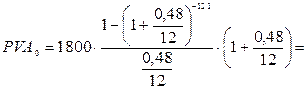 Решение: R = 1 800 руб. j = 48% = 0,48 m = 12 n = 1 год