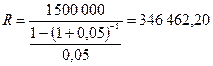Решение: I = 5% = 0,05 N = 5 лет PVA = 1 500 000 руб.