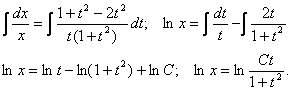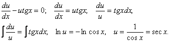 Уравнение (2) есть уравнение с разделяющимися переменными относительно U И Х. Решим это уравнение: