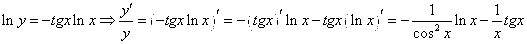 Прологарифмируем заданную функцию и найдём производные от левой и правой частей: