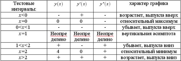 Результаты исследования функции занесем в таблицу.