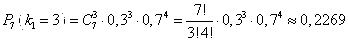 3. Ймовірність того, що в коробці буде бракована деталь 0,3. Знайти ймовірність того, що серед 7 деталей буде 3 браковані; не менше 2 бракованих.